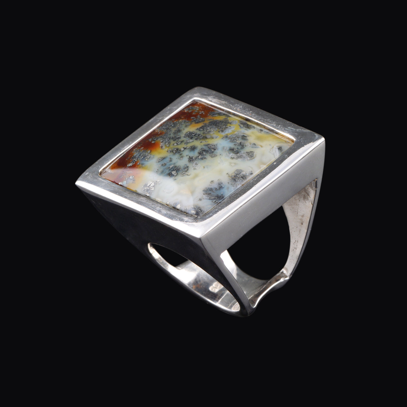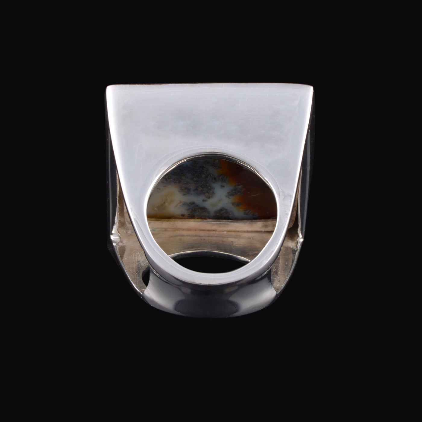 Anillo artesanal hecho a mano con plata de ley y jaspe oceanico.
