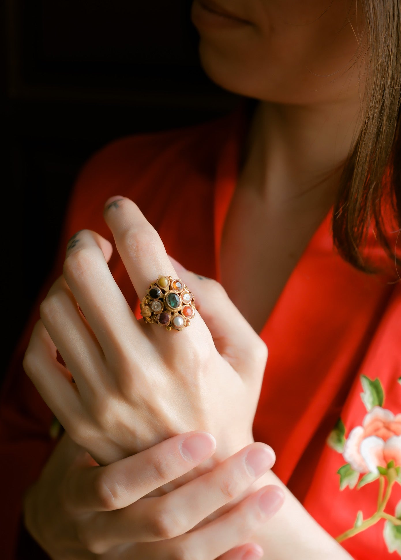 Anillo artesanal de los 9 planetas o Navaratna hecho a mano con oro y nueve gemas . Es una de las piezas mas poderosas y simbólicas de la joyería basada en la astrología védica, usado como amuleto que atrae equilibrio, protección y prosperidad a quien lo porta al neutralizar las influencias planetarias desfavorables.