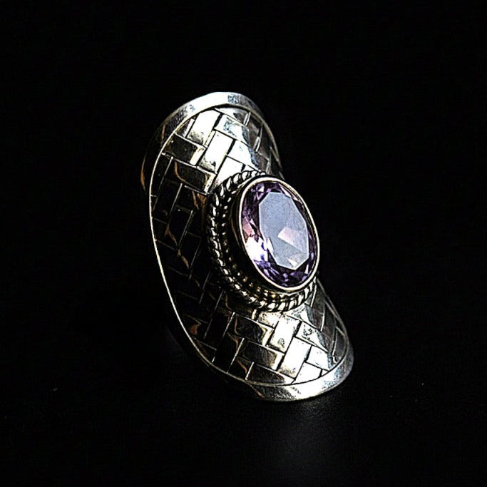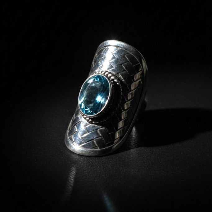 Anillo artesanal hecho a mano con plata de ley y piedra semi preciosa facetada.