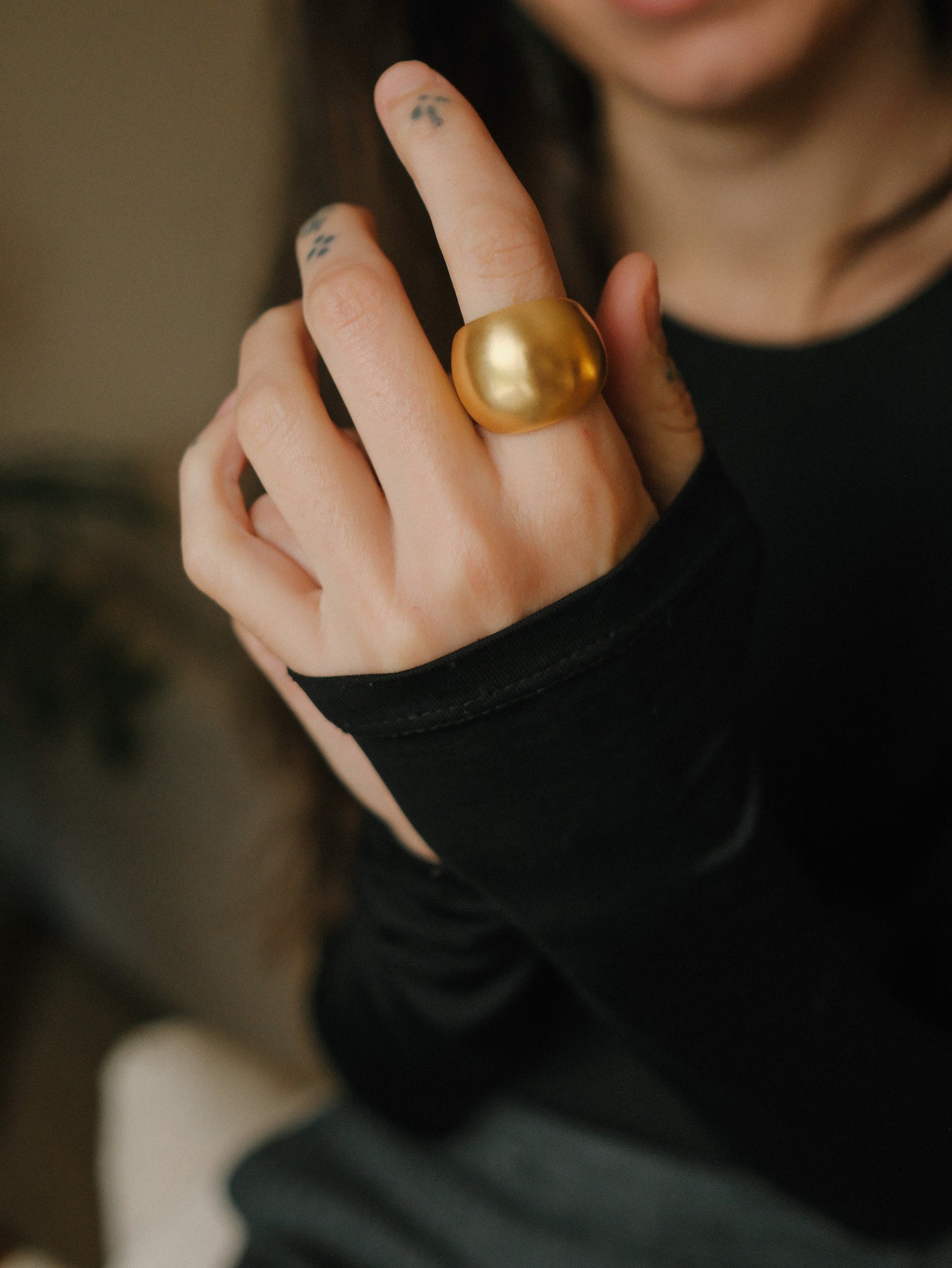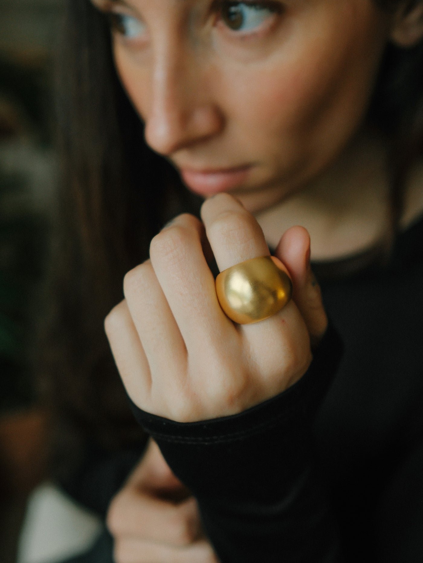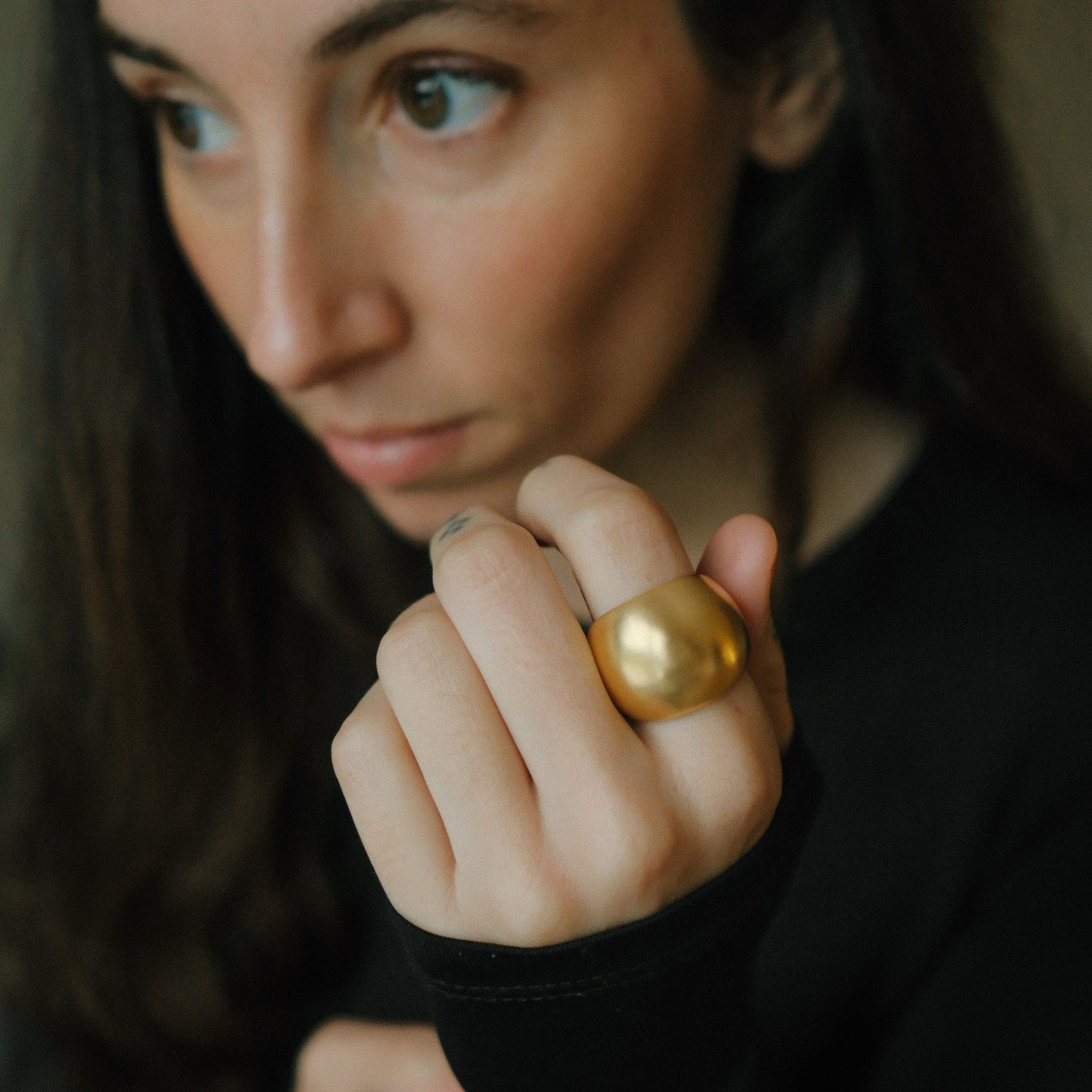 Anillo artesanal hecho a mano con plata y baño de oro mateado.