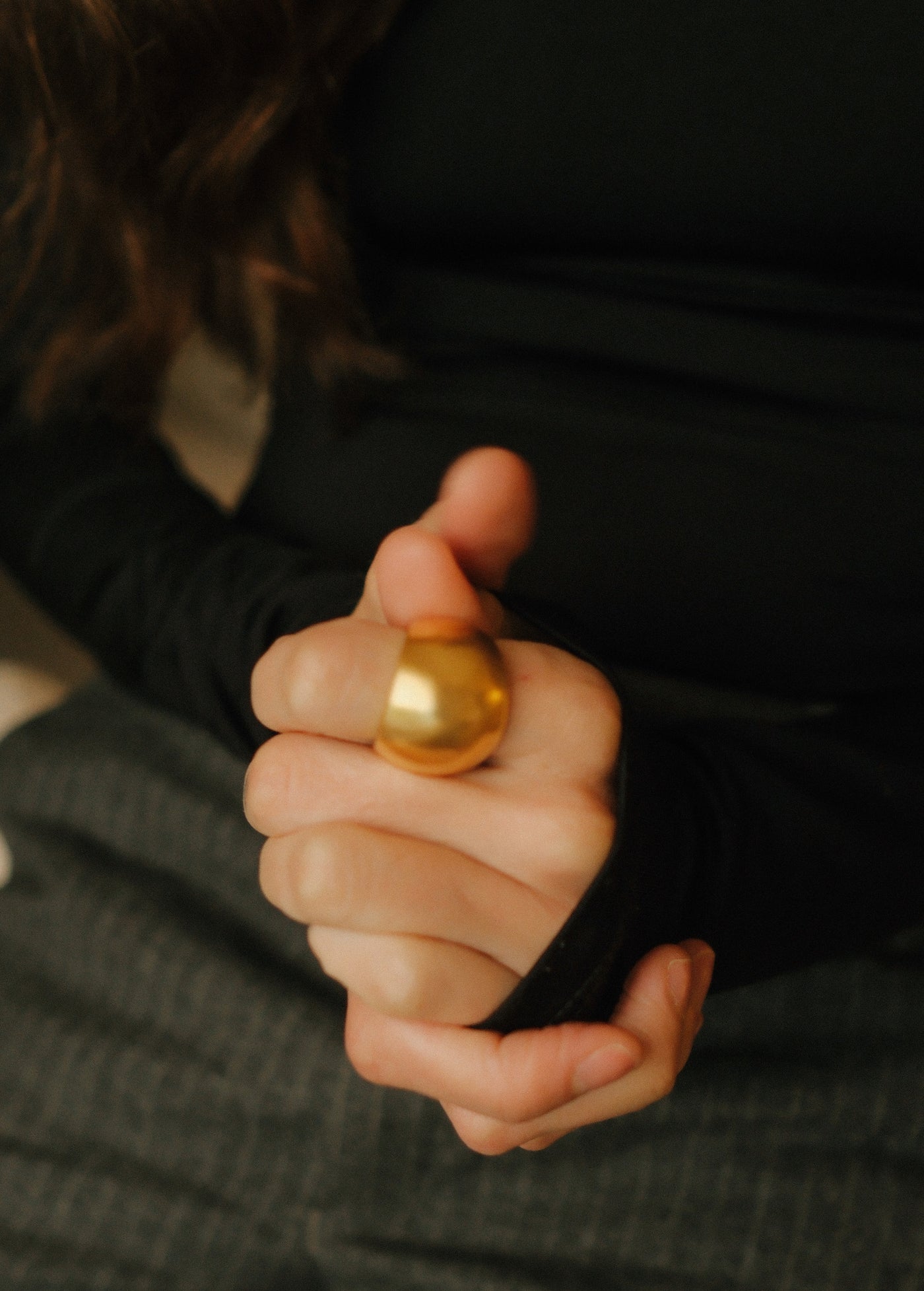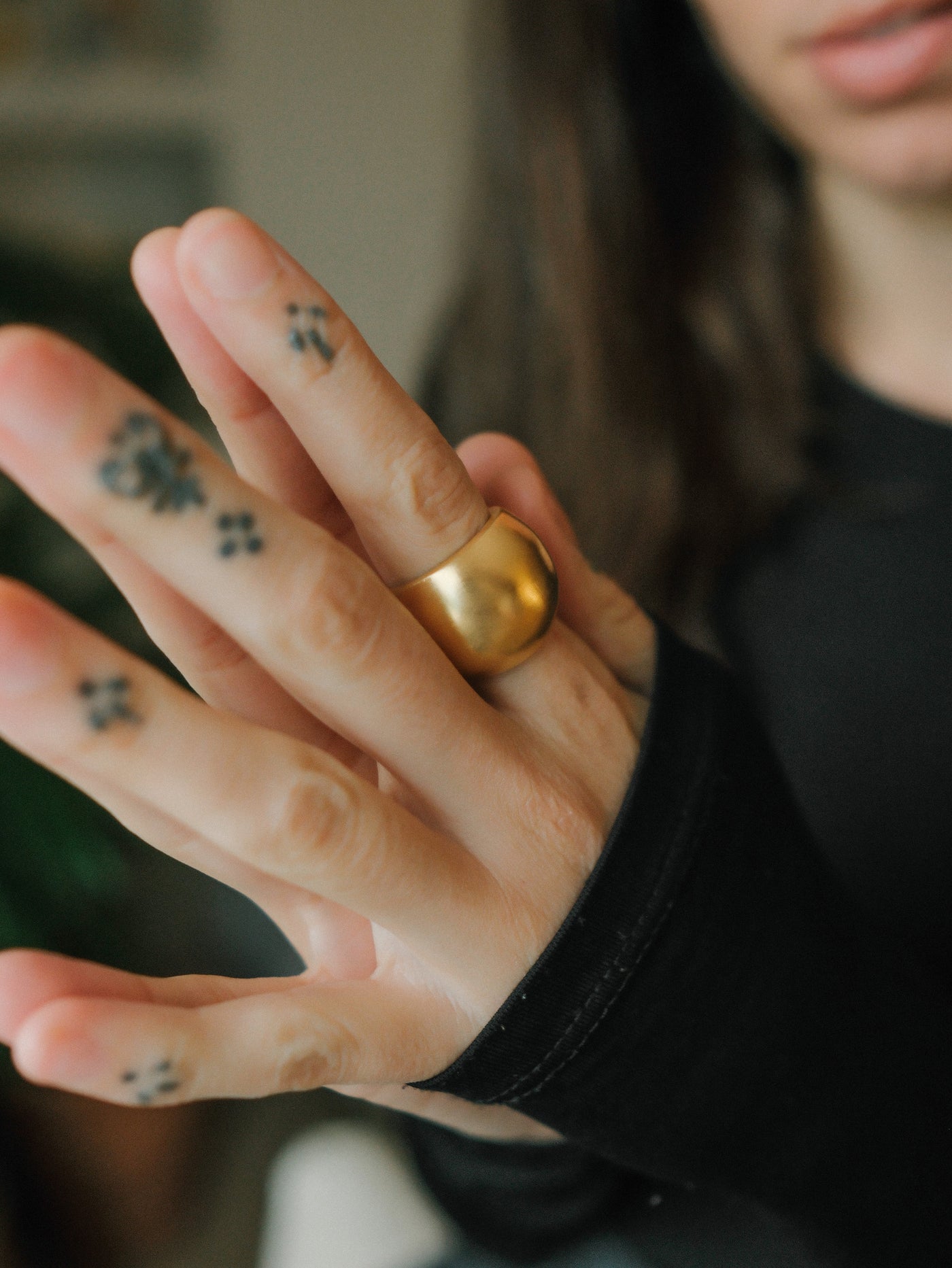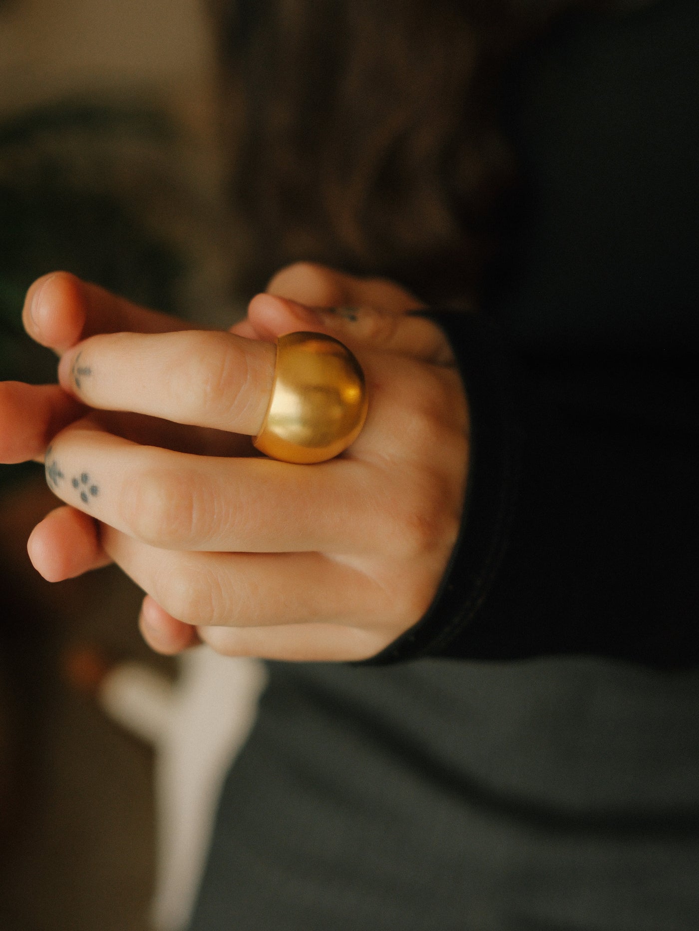 Anillo artesanal hecho a mano con plata y baño de oro mateado.
