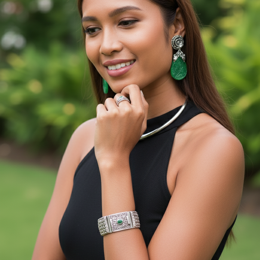 Pendientes artesanales hechos a mano con plata de ley y jade. El cierre es de tipo omega lo que asegura una gran sujeción