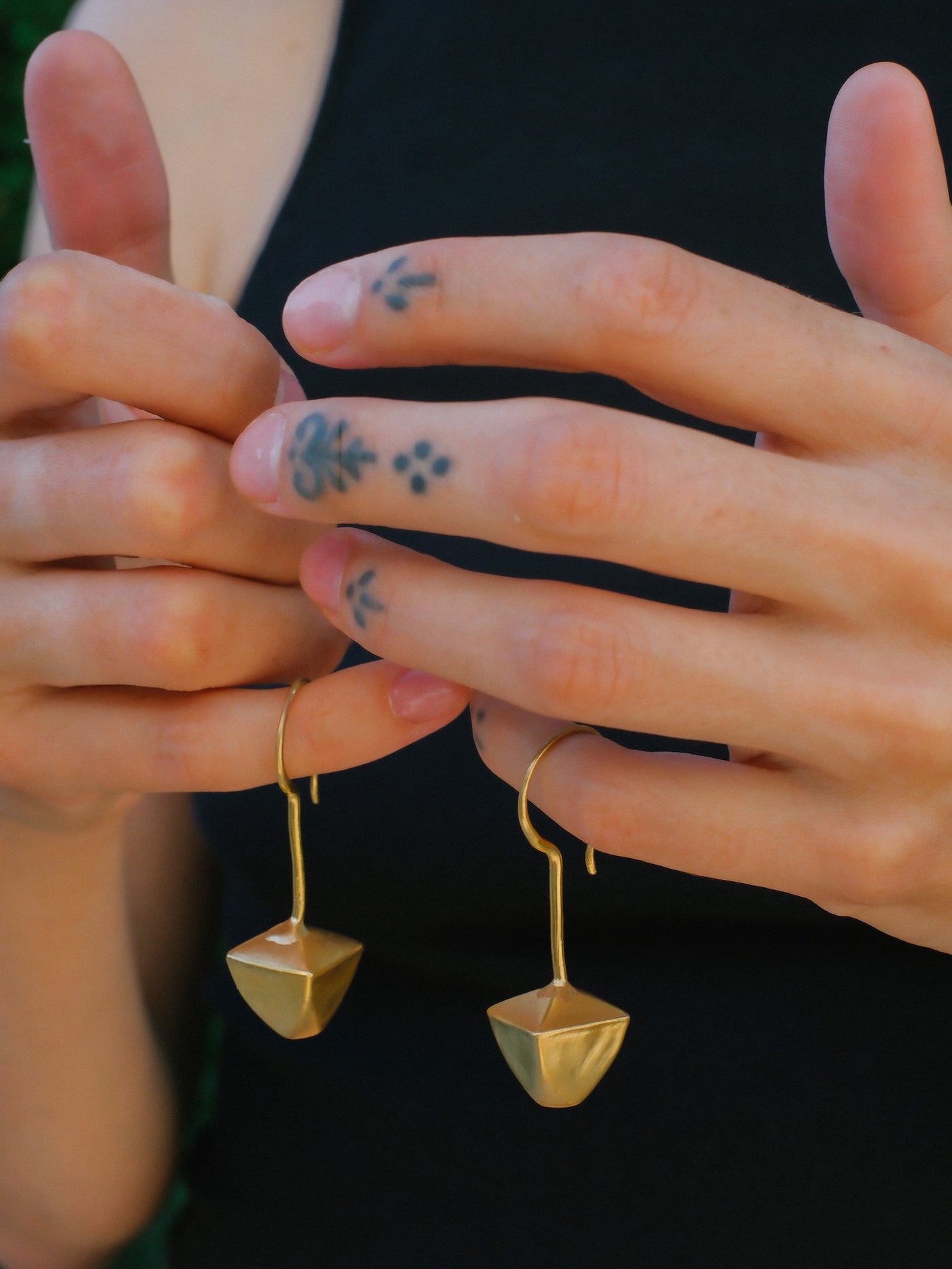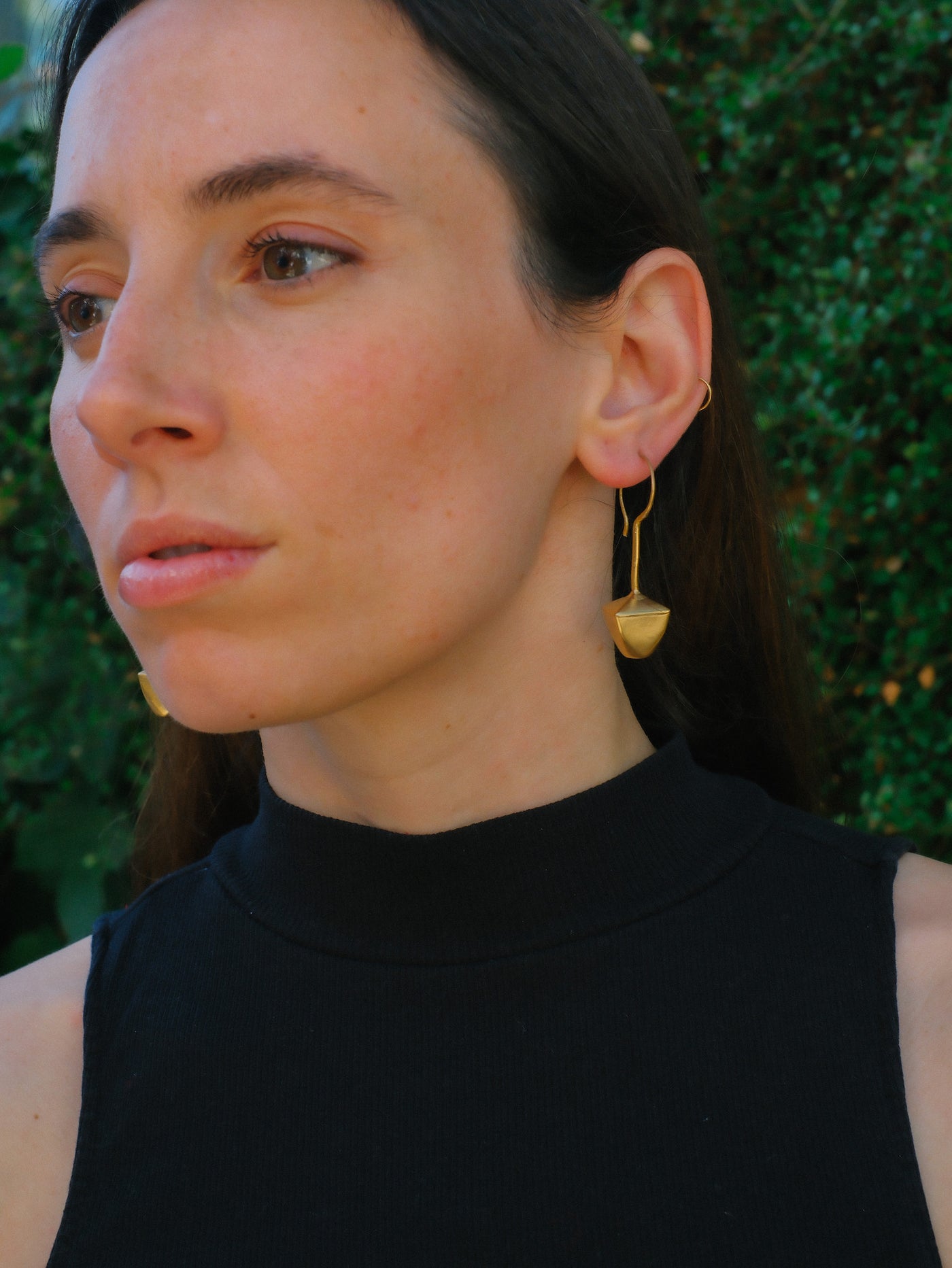 Pendientes antiguos de plata de la etnia Rabari, grupo nomada que habitan principalmente en el Estado de Gujarat ( India). Tienen un baño de oro mateado.