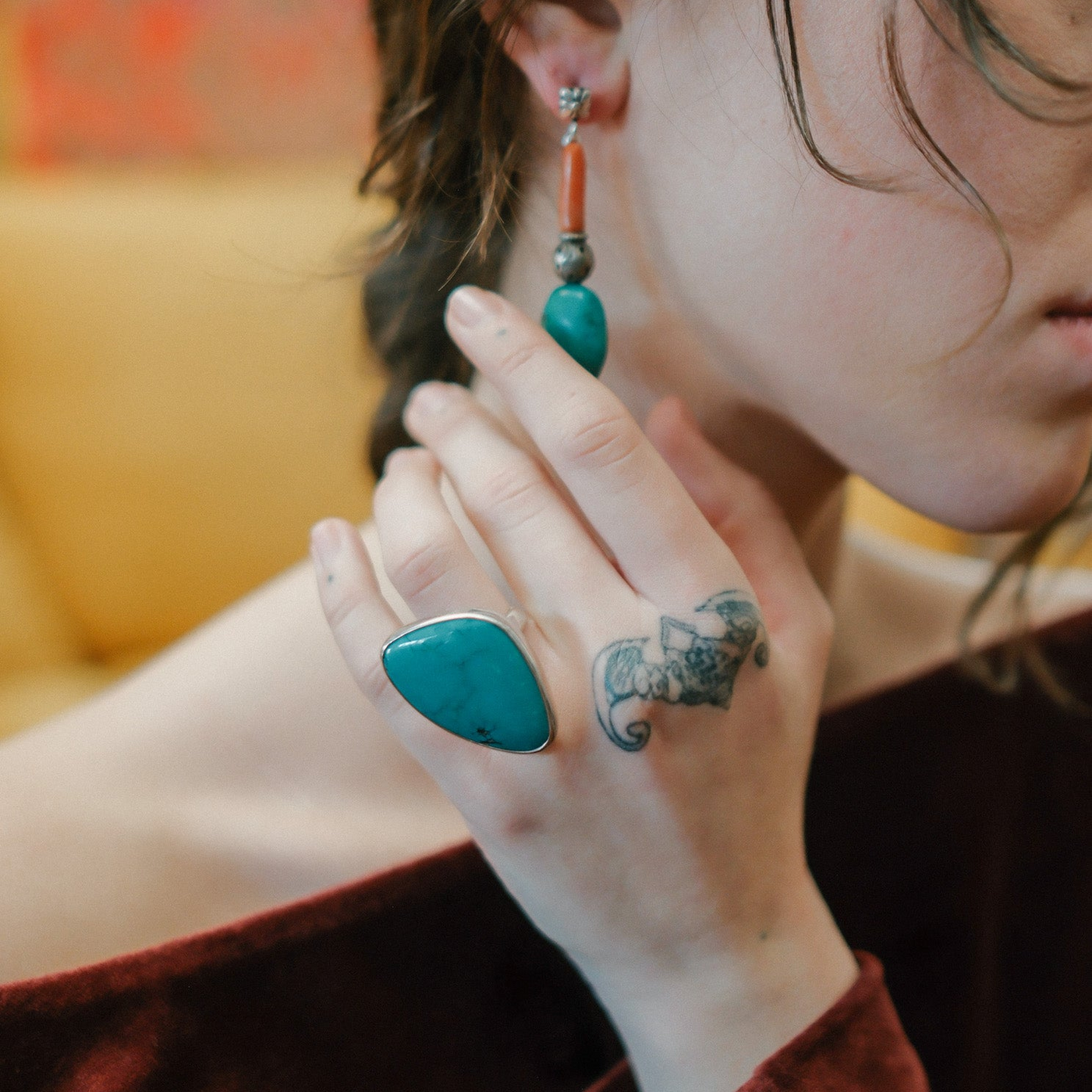 Handmade artisan ring made with sterling silver and turquoise.